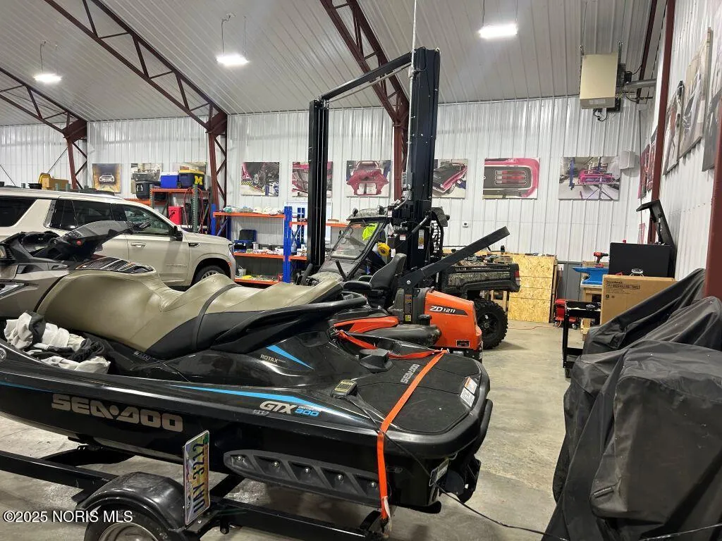 Don’t miss this truly one-of-a-kind property offering exceptional quality and thoughtful design throughout. This impressive 50′ x 90′ steel-constructed building sits on an acre of land and features 6-inch-thick concrete floors with radiant heat, providing the strength and durability needed to accommodate heavy equipment. Additional highlights include gas forced-air heating, surround sound both indoors and outdoors and a comprehensive security system with interior and exterior cameras. The building is fully insulated in both the walls and ceiling, and its exterior is enhanced by a paved driveway, attractive window trim, cupolas and seamless gutters with gutter guards. The living area boasts durable epoxy flooring and is complemented by a new washer and dryer, a newly installed shower and urinal. The kitchen is equipped with updated cabinetry, all new appliances and a mini-split system provides efficient heating and air conditioning. Outdoors, the gazebo offers an ideal space for entertaining, relaxing with family and friends or enjoying sports and movie nights. Every detail has been carefully considered, making this an exceptional and beautifully finished property.